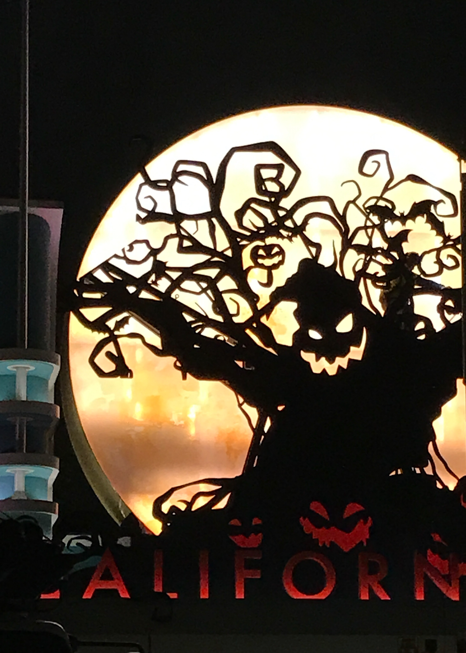 Part of my job was to convert the Oogie Boogie bat tree concept art into reality for the entry statement and to create the vignette of flying bats escaping the Carthay Circle tower. I was also responsible for tracking and supporting staff graphic designers and contract designers on the creation of custom scary movie posters for Carsland and development of a banner program on Buena Vista Street.